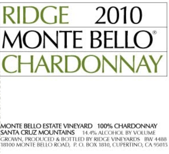 Ridge Vineyards Monte Bello Chardonnay – 1990